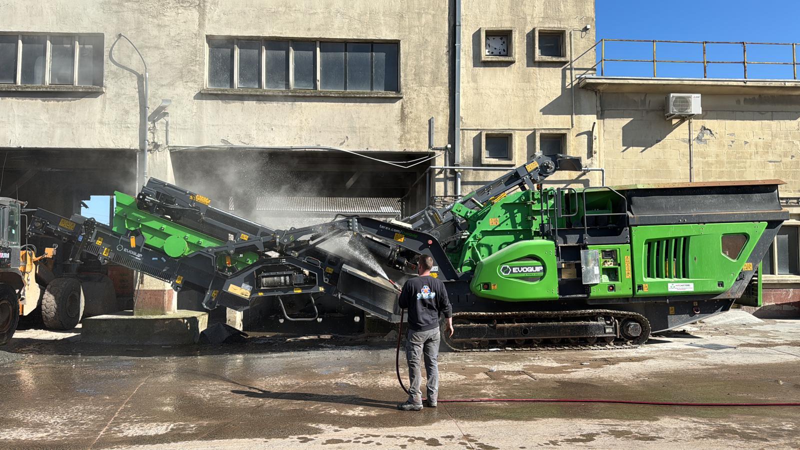 尺寸與重量(Dimensions & Weight) •機器重量:31.5 公噸(33.6 美噸 UST) •運輸寬度:2.5 m(8’4”) •運輸長度:9.7 m(31’10”) •運輸高度:3.1 m(10’4”) •作業寬度:2.5 m(8’4”) •作業長度:13.4 m(44’) •作業高度:4.7 m(15’6”) 產品特色(Features) •高度堅固的結構設計,具備卓越耐用性,可承受各類難以破碎的高強度物料。 •雙 132 kW 電動馬達驅動,提供與柴油/液壓驅動機型相同等級的產能與扭矩表現。 •履帶行走系統由小型柴油引擎驅動,方便場內移動與定位。 •即插即用(Plug & Go)快速設定功能,確保操作安全且簡單。 •雙軸破碎設計,提供卓越的進料管理能力,降低磨耗,具備自我清潔效果,並有效防止物料纏繞。 •11 kW 輔助馬達,讓操作人員可在全電動模式下執行各項設定功能。 •所有設定功能皆可在電動或柴油/液壓模式下操作,使用彈性極高。 •人性化操作介面,可同時掌控柴油與電動動力系統功能。