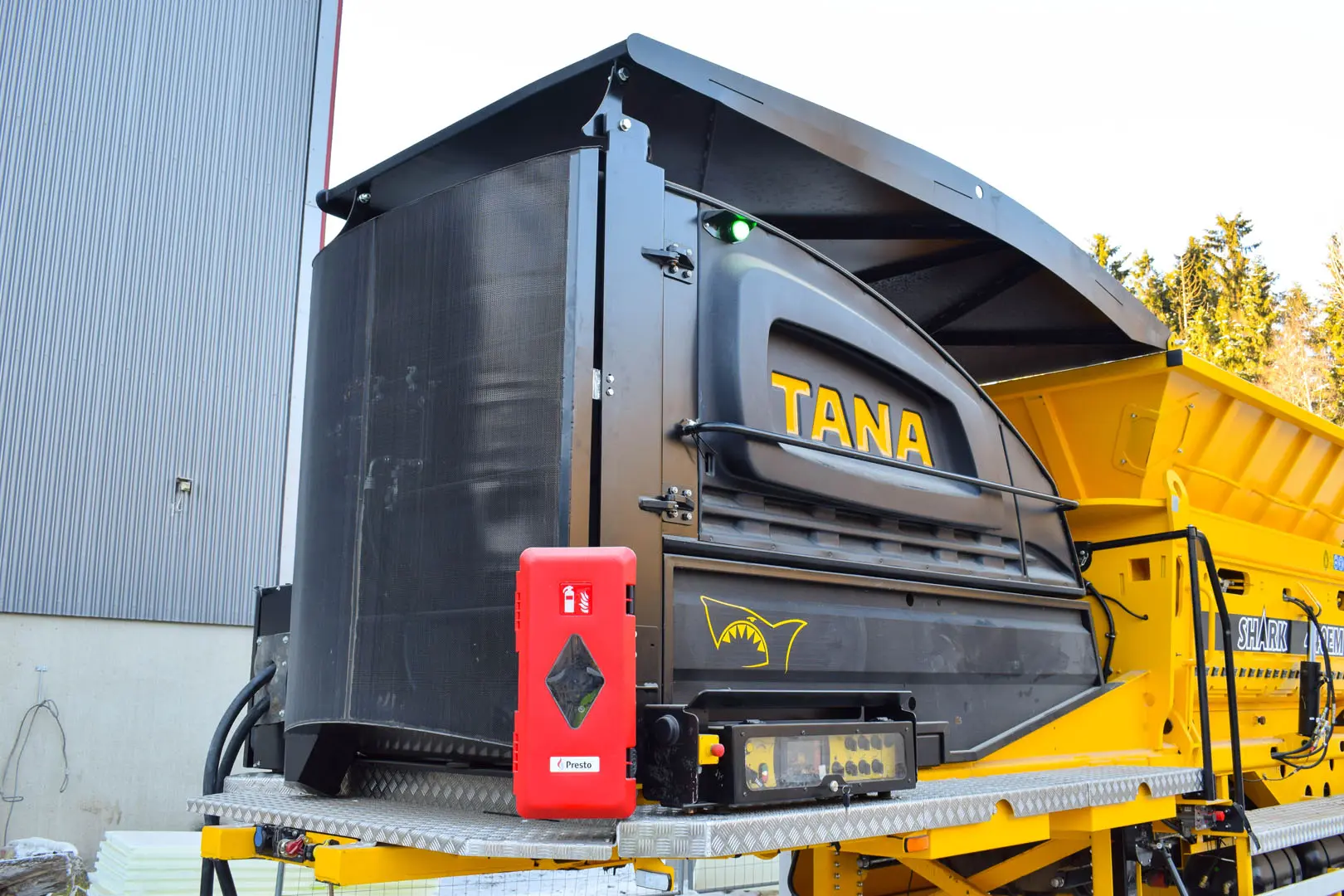 TANA H320 掩埋場壓實機規格摘要 • 操作重量:32,000 公斤 • 壓碎力:157 kN • 額定功率(SAE J1995):325 馬力(242 kW)@ 2,100 rpm • 排放標準:EU Stage IIIA / U.S. EPA Tier 3 • 行駛速度(低速):0–4 km/h • 行駛速度(高速):0–10 km/h • 壓實寬度(前滾筒):2,660 mm • 壓實寬度(後滾筒):2,660 mm 選配項目 •提供 26 種選配,部分示例如下: o操作相關選配:滅火系統、3 合 1 鏟斗、擋風玻璃保護罩 o舒適性選配:空調座椅、加熱後視鏡、駕駛室預熱器(電動或柴油) o其他選配:引擎及液壓油預熱器(電動或柴油)、自動中央潤滑系統、電動燃油加注泵