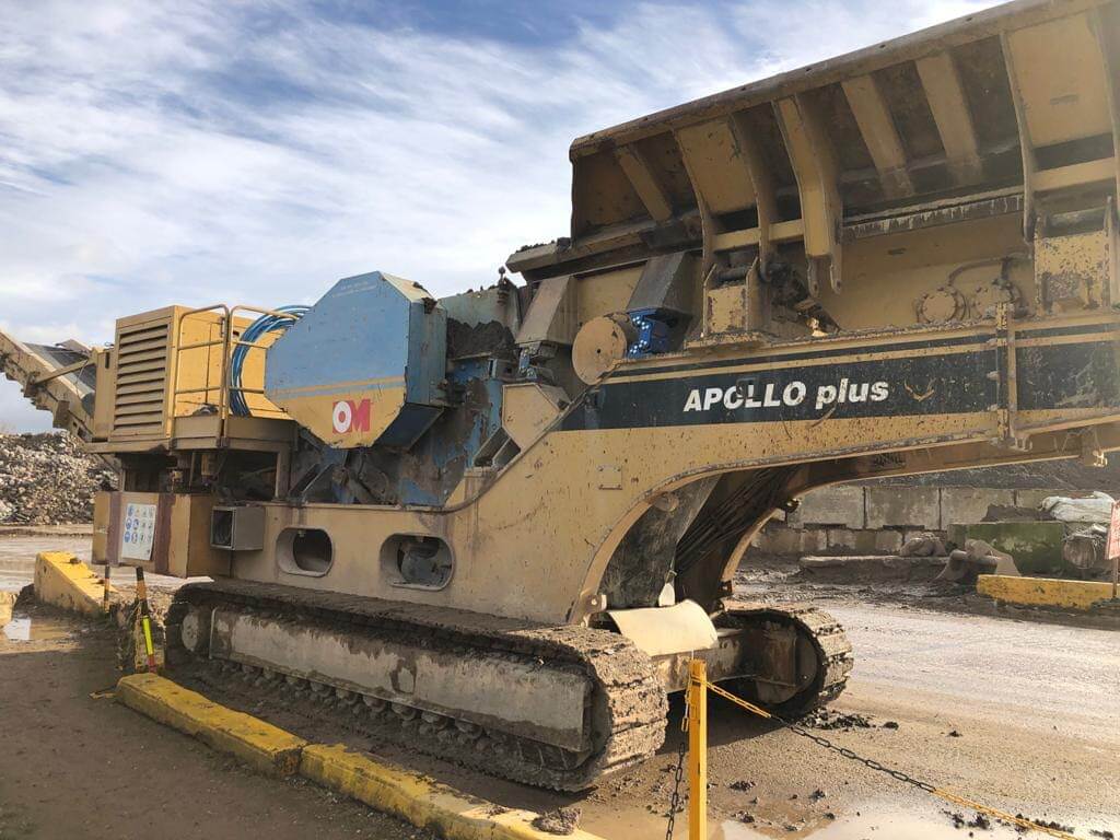 製造商:OM 型號:Apollo 年份:2010 狀況:二手 庫存編號:OY024 運轉與結構資訊 使用時數:9,863 小時 重量:39,000 公斤 料斗容量:4 立方公尺(4 m³) 顎口尺寸:1,050 × 730 mm 引擎:Caterpillar